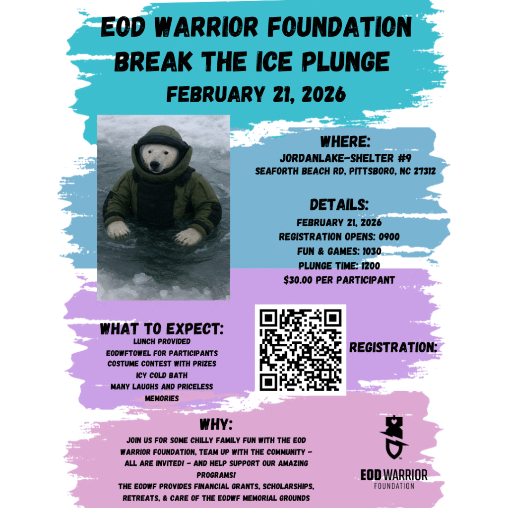 This event brings the community together for some chilly fun while supporting the mission of the EOD Warrior Foundation. Proceeds help fund critical programs including financial assistance grants, educational scholarships, healing retreats, and the ongoing care of the EOD Warrior Memorial Grounds.
