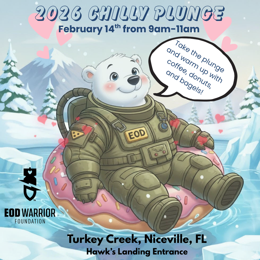 Take the plunge for love this Valentine’s Day! Register here! Join us on February 14th from 9:00am–11:00am for the 2026 Chilly Plunge at Turkey Creek in Niceville (Hawk’s Landing entrance). Start your morning with a bold dip, then warm up with donuts, bagels, and hot coffee — proudly sponsored by Black Rifle Coffee Company, along with hot