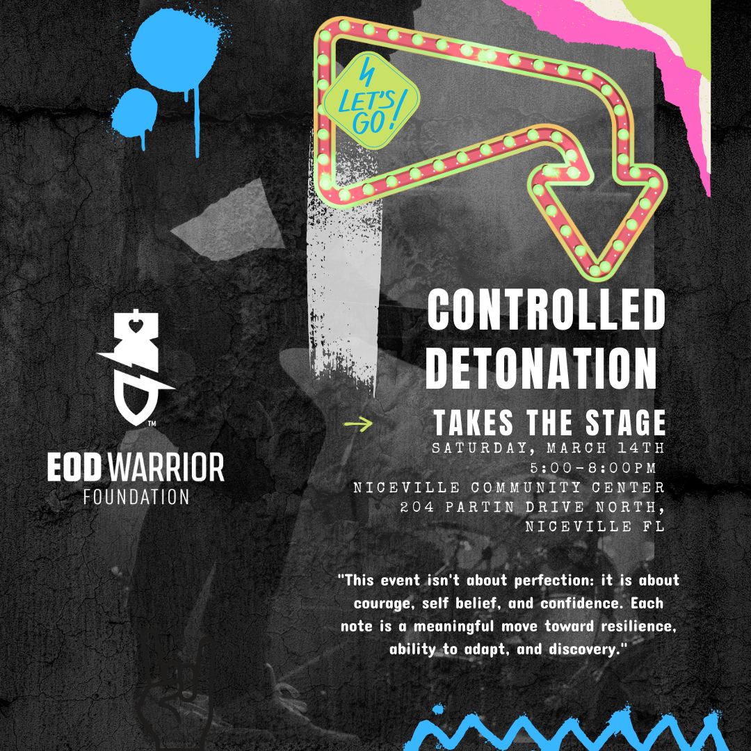 Saturday, March 14th | 5:00–8:00 PMNiceville Community Center204 Partin Drive NorthNiceville, FL Get ready — Controlled Detonation is taking the stage for a night that’s bigger than music. This isn’t just a concert. It’s a celebration of courage, confidence, and resilience. Free admission. Donations appreciated. Light snacks/refreshments provided. Each note